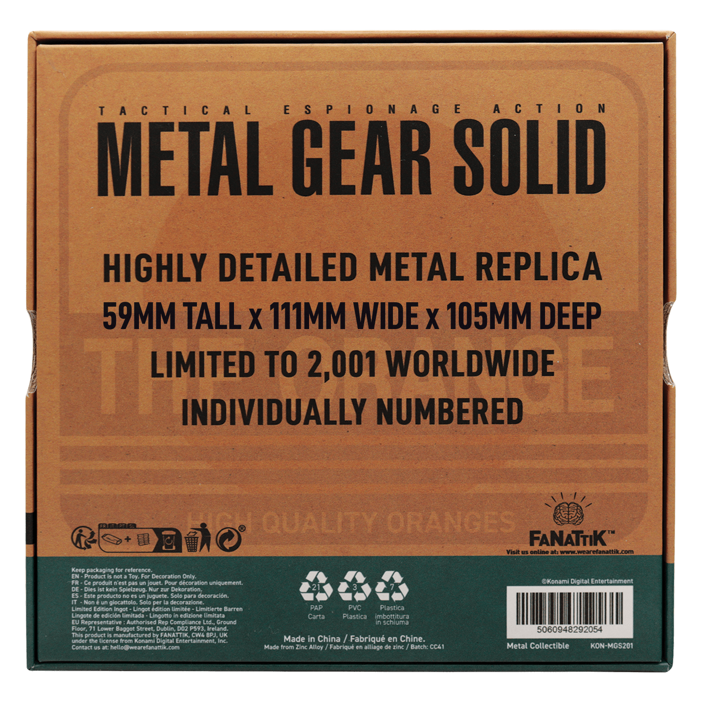 Created by Fanattiks, this unique collectible pays homage to one of the most iconic and unconventional tools in the Metal Gear Solid series—the humble cardboard box. In Metal Gear Solid 2, Raiden famously used the box as a means of stealth, sneaking around undetected by enemies. Now, this legendary item is brought to life in a high-quality metal form. Expertly crafted, each box is heavily embossed to capture the essence of its in-game counterpart.