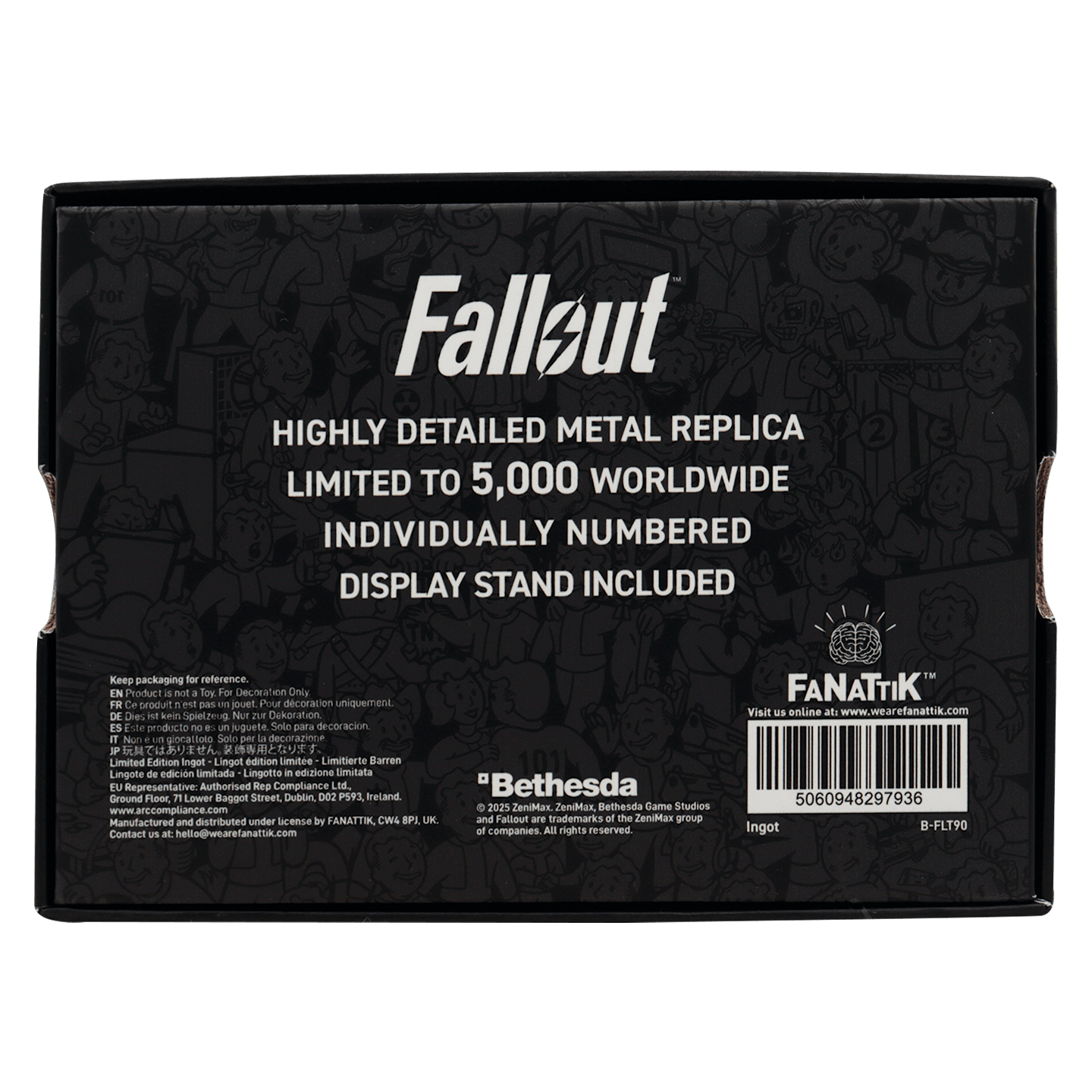 Created with a double-sided design and made from metal, this authentic collectible is built to last longer than any Pip-Boy battery. Each card is individually numbered on the reverse, making every piece unique, and with only 5,000 worldwide, its rarity is like finding clean water in the Capital Wasteland!