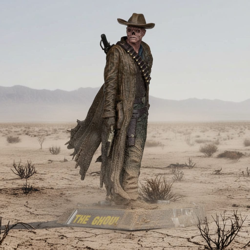 The McFarlane Toys Movie Maniacs Fallout The Ghoul Action Figure captures the hardened survivor who roams the wasteland as a feared bounty hunter. Once human, now forever changed by radiation, The Ghoul endures through centuries of decay and desolation. Pragmatic and ruthless, he carries the weight of a mysterious past, embodying the unforgiving heart of the Fallout universe.