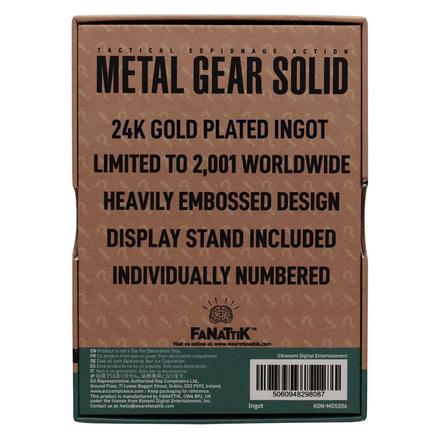 The hero of Metal Gear Solid 2, Raiden is thrust in at the deep end when the terrorist group Sons of Liberty attack and kidnap the US President and he's tasked with the rescue operation! The double-sided printed 24k gold plated ingot celebrates his actions and is limited to 2,001 worldwide (in reference to the year of release of the game). It's individually numbered and comes with a display stand in its presentation box.