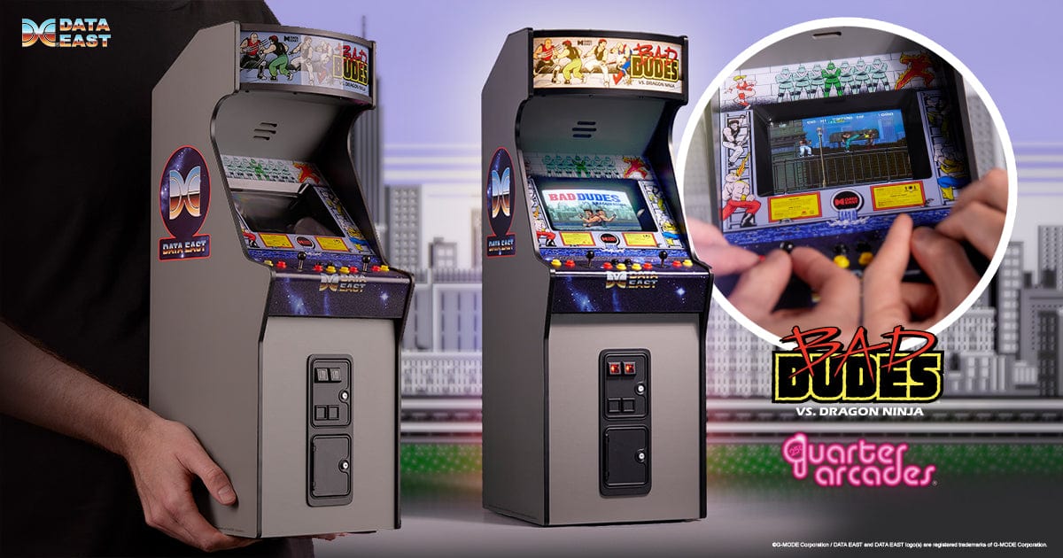 Official Data East product: quarter scale wooden replica of the original Bad Dudes Vs. DragonNinja arcade cabinet launched in 1988