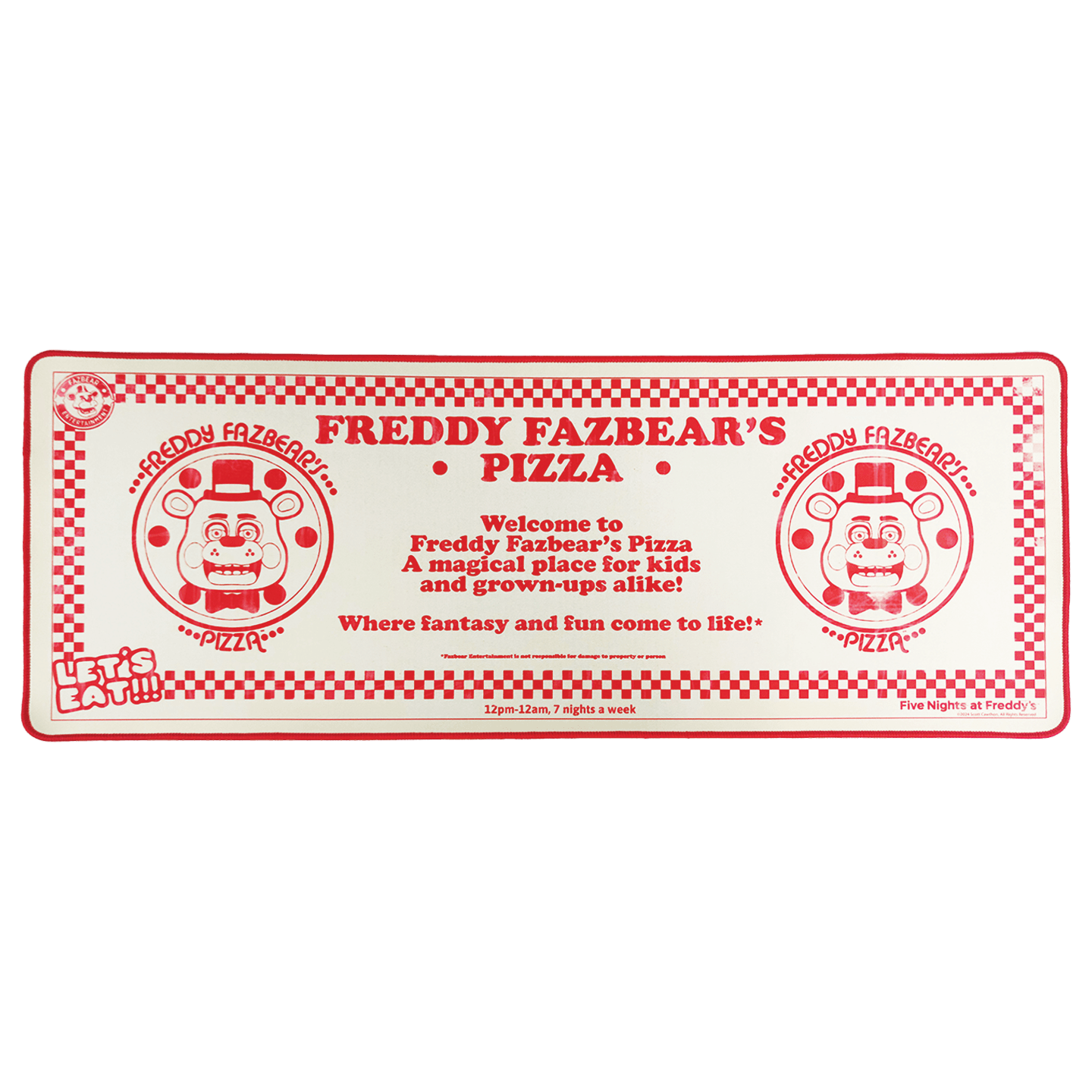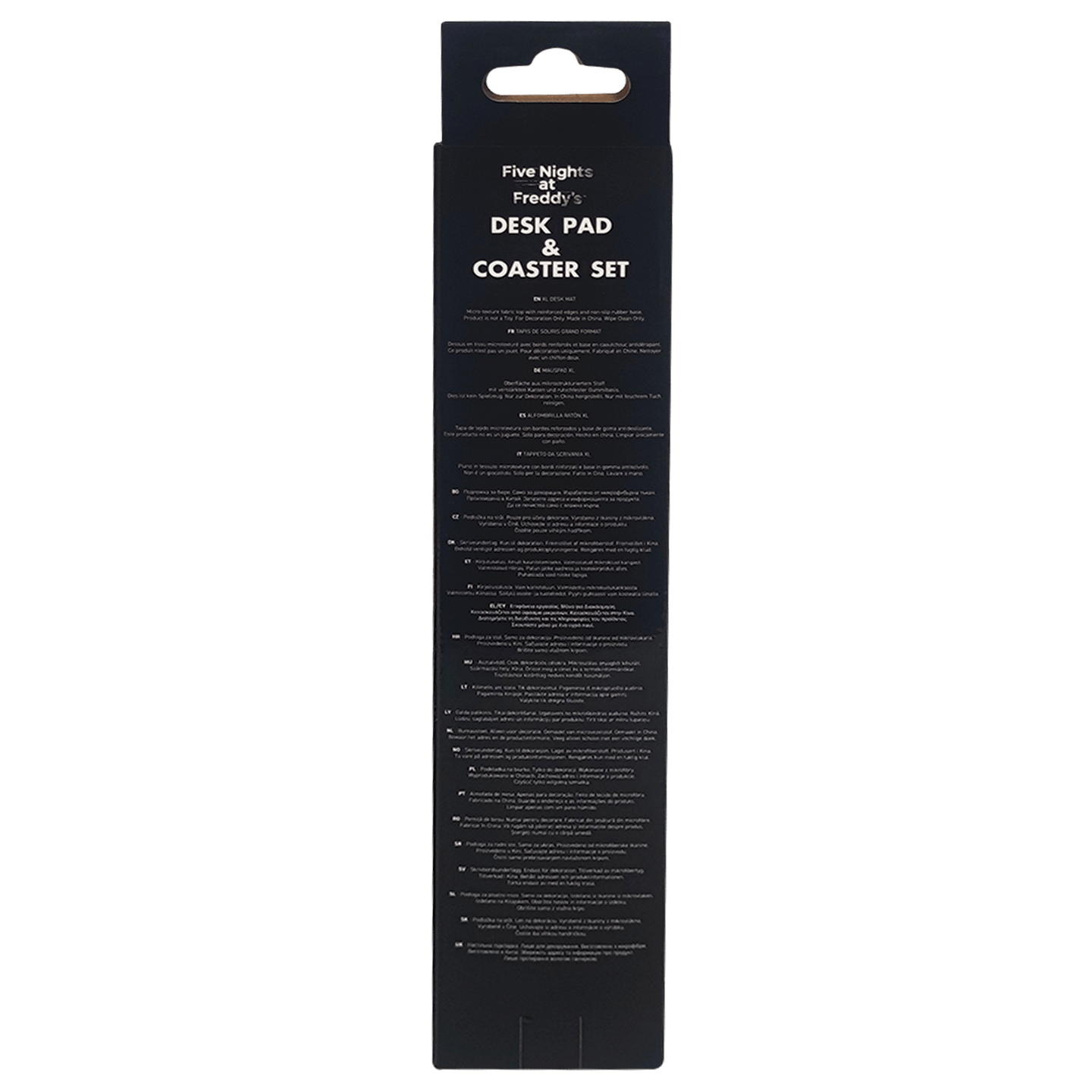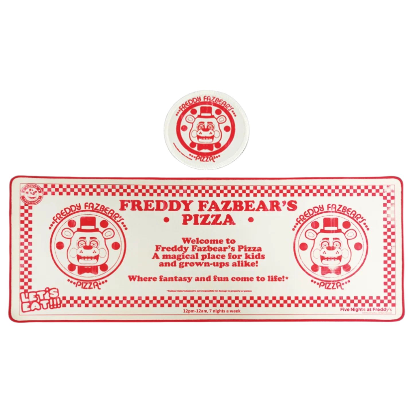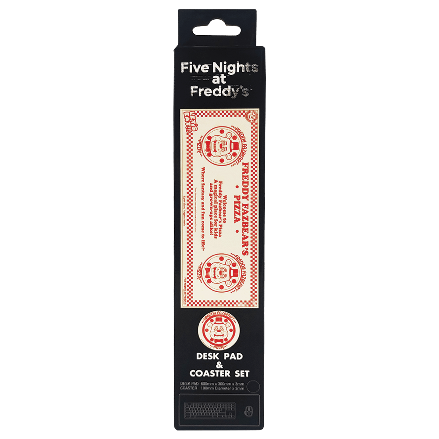 Prepare your desk for the ultimate Five Nights at Freddy's experience with this officially licensed Desk Pad and Coaster set! Featuring a sleek, micro-textured fabric surface for precision and comfort, both the desk pad and coaster are designed with reinforced edges for durability and a non-slip rubber base to keep everything in place, no matter how intense your gaming sessions get.