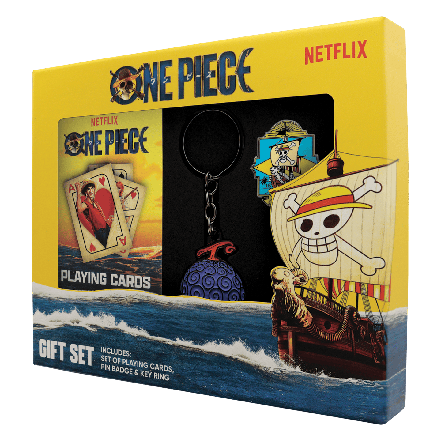 Be ye ready fer some One Piece gifts? This officially licensed One Piece gift set is worthy of the eponymous treasure itself! Comprising a set of One Piece playing cards, a pin badge depicting the Going Merry, and a keyring in the shape of a Gum Gum Fruit, this high-quality set comes in a display box and is an ideal gift for any fan of Netflix's live action show.